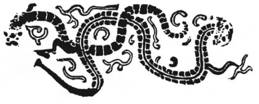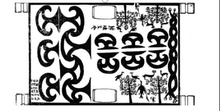 ▲湖北随州曾侯乙墓出土的战国漆器上的人面蛇形纹饰