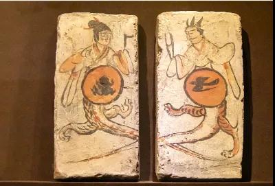 在河南、云南、山东、四川、重庆等多地出土伏羲女娲形象的画像砖。新疆吐鲁番地区出土的唐代伏羲女娲图则大都绘制于绢或麻布之上,与甘肃、湖南、山东出土的伏羲女娲图中的人物特点基本一致,人首上方绘有太阳图案,交尾下方绘有月亮图案,新增了点或圆的纹饰,部分图像上的点或圆由短墨线连接,呈现出的图案与中国古代星宿图案相吻合。可见伏羲文化发展时期涉及范围相对广阔,文化内涵逐渐稳定,同时使得伏羲的形象更加具象化。