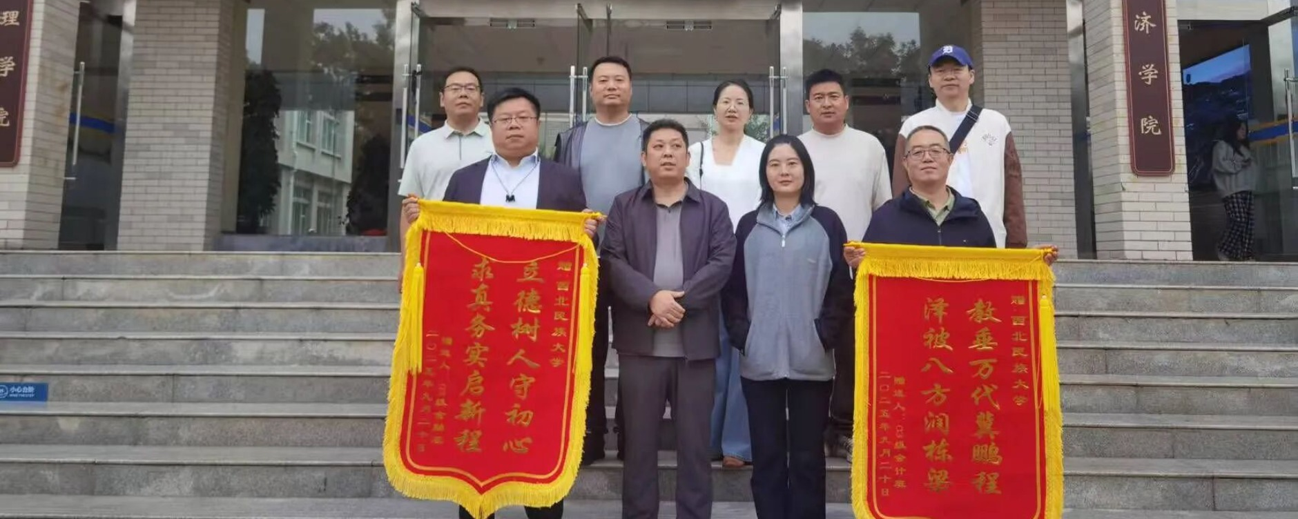 9月20日,在全校欢庆西北民族大学75华诞之际,经济学院迎来了一批特殊的“学子”— 2007届8位校友荣归母校。参与主题为“回望青春路,赋能新征程”的校友返校交流分享活动。 活动当日,校友们首先在经济学院王超院长及张建深、郭蕙兰老师的陪同下,参观了校园。从翻新升级的教学楼、设备先进的实验室,到焕然一新的体育场、温馨雅致的图书馆,母校的每一处变化都让校友们倍感亲切与自豪。校友们捐赠了锦旗,表达对母校的感恩与眷恋之情,并祝福母校的发展越来越好。在随后的交流分享会上,7位校友结合自身职业发展与成长经历,为在校学